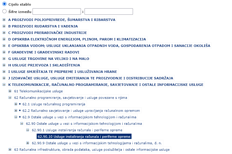 - Unutar izabranog sektora, pronađite najprecizniju KPD oznaku. Ako točna šifra ne postoji, birate najbližu odgovarajuću.