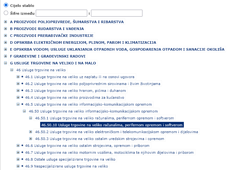 ROBA: S obzirom da se radi o veleprodaji informatičke robe, svakoj stavci robe dodjeljuje istu KPD šifru iz odgovarajućeg sektora G (46.50.10).:
